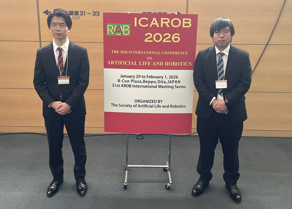 2026年1月29日(木)~2月1日(日)の4日間にかけて大分県別府市にて開催された国際会議「The 2026 International Conference on Artificial Life and Robotics (ICAROB2026)」において、本研究室の学生の滝口くんと上野くんが研究発表を行いました。