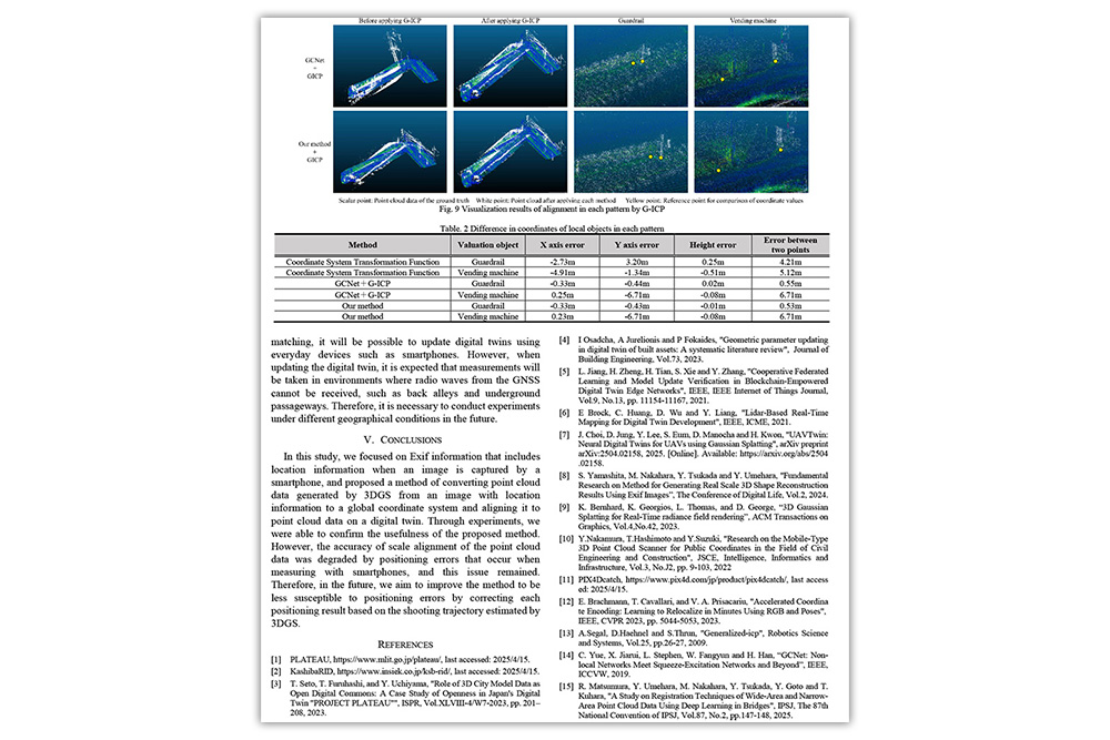 • タイトル:「Trial on 3D Gaussian Splatting Alignment Using EXIF Information of Images and Shooting Trajectory」